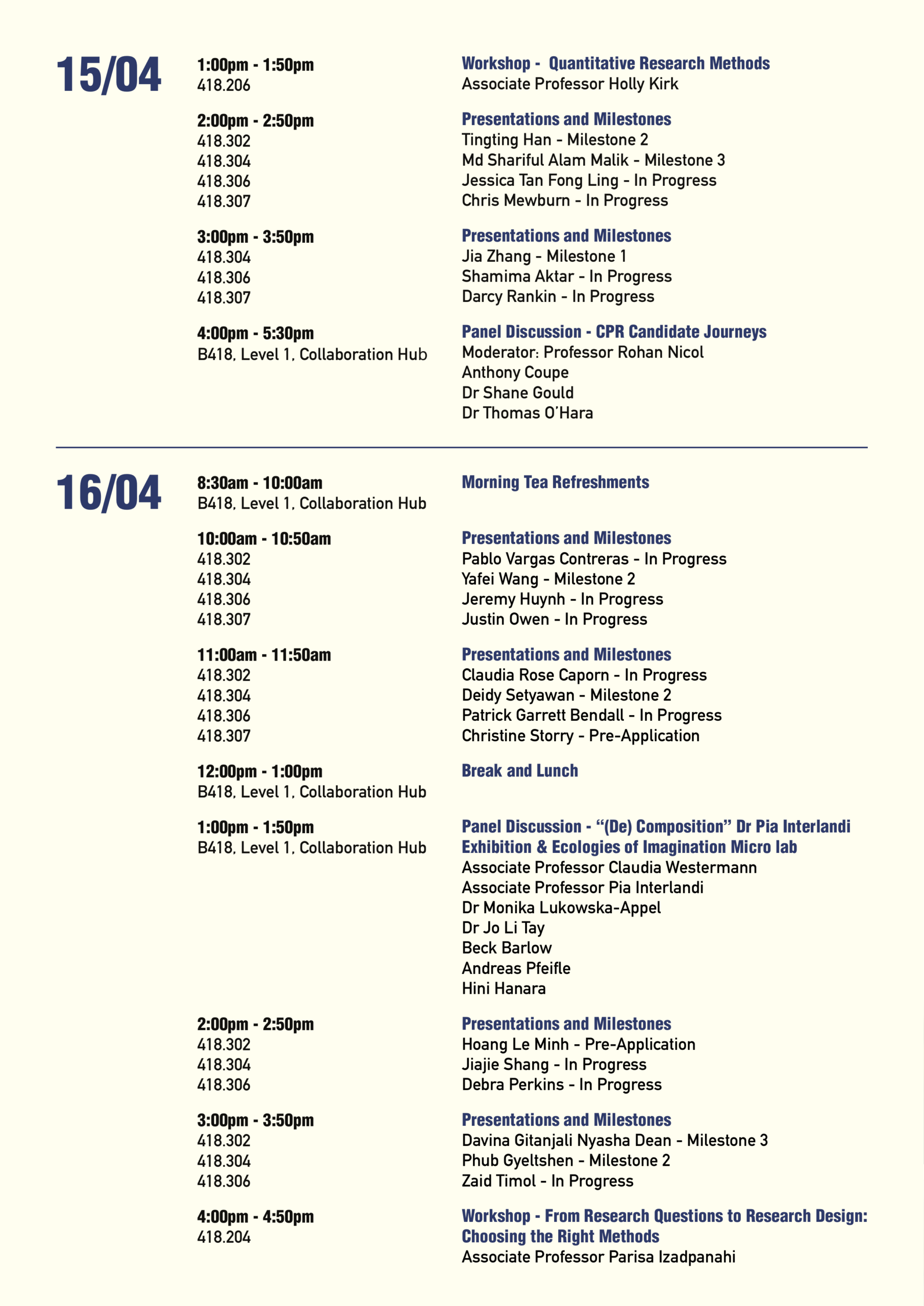 Registration is essential for the opening and closing event, workshops and panel discussions. Please note that presentations and milestone sessions are open for walk-in attendance.